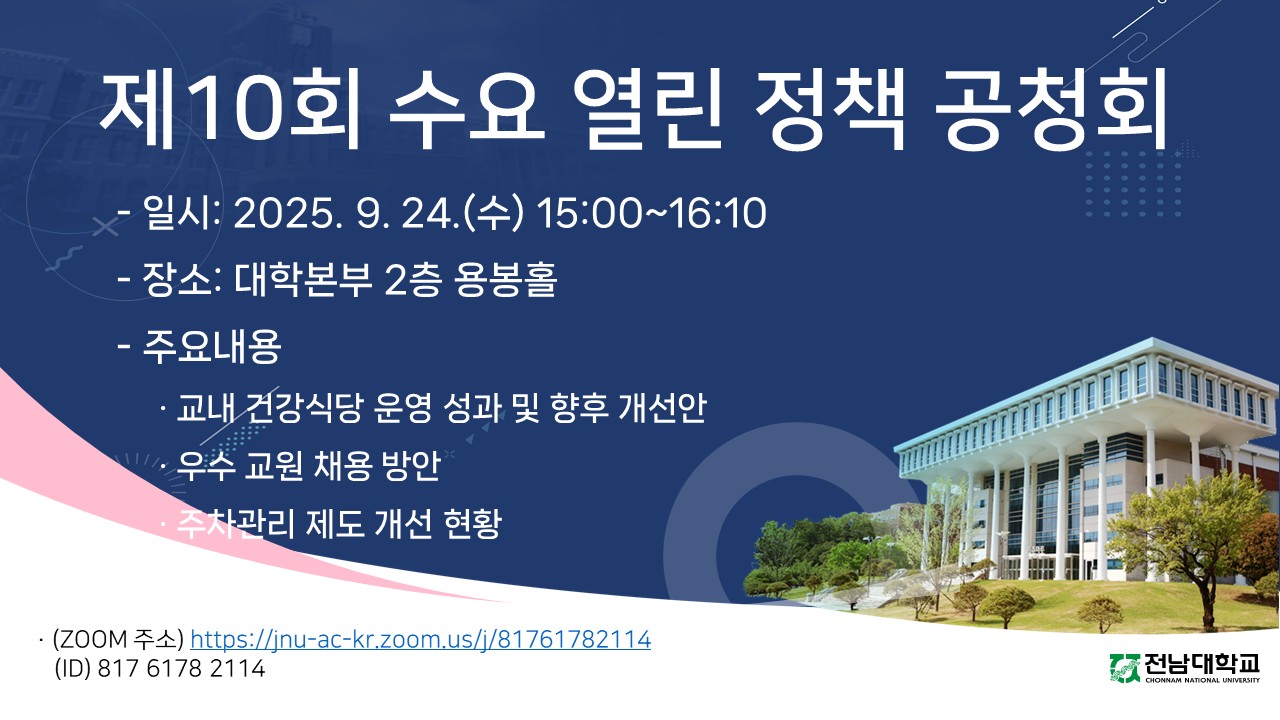 교내 구성원의 다양한 의견을 수렴하고자 아래와 같이 공청회를 개최하오니 많은 참여 바랍니다.