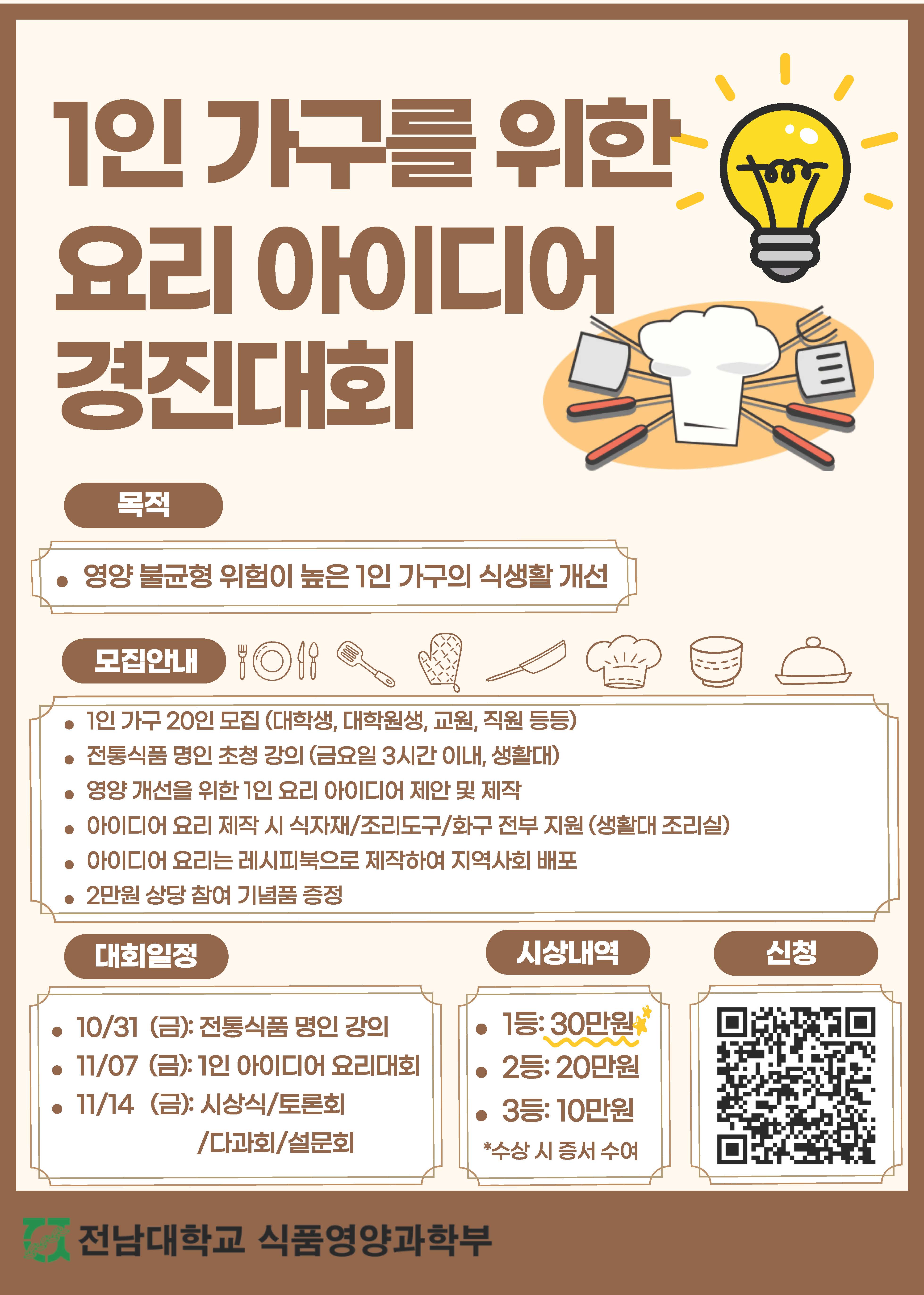 <1인 가구를 위한 요리 아이디어 경진대회 지원자 모집 안내>
