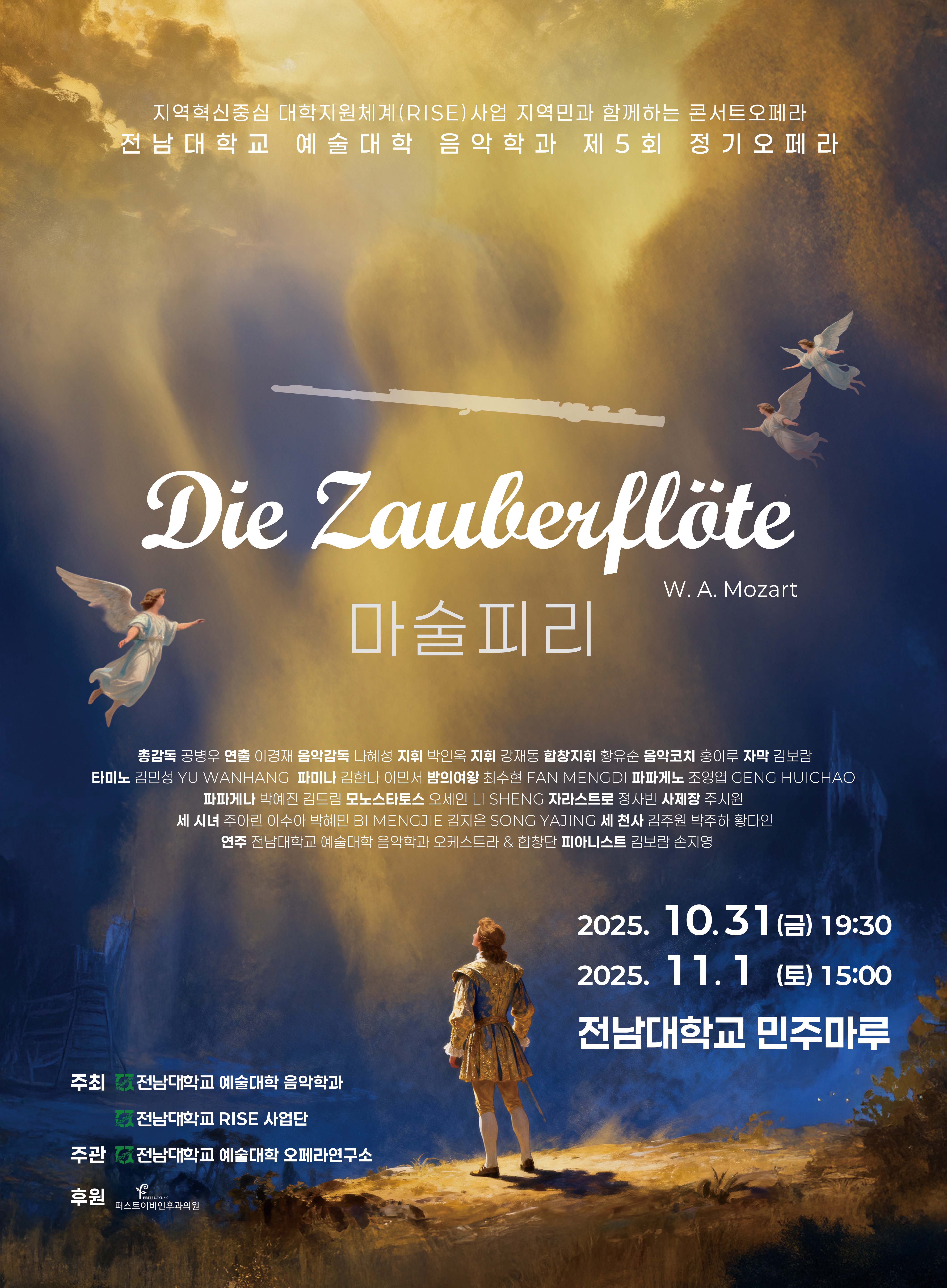 모차르트의 오페라 <마술피리>가 2025. 10.31.(금) 오후 7시 반, 11.1.(토) 오후 3시 양일 간 진행됩니다.