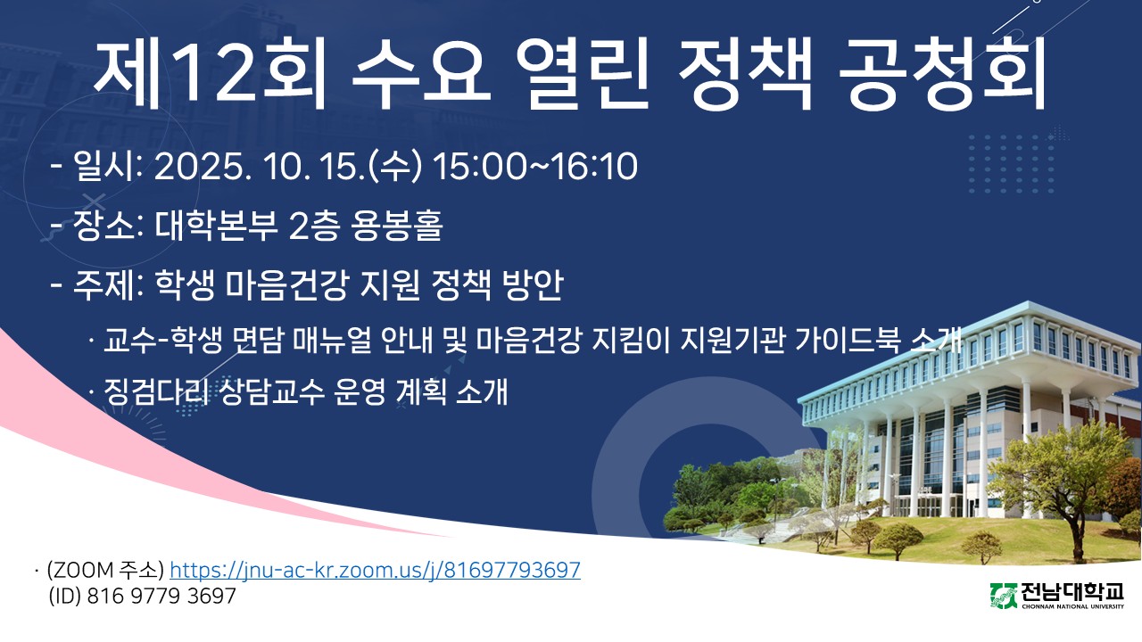 교내 구성원의 다양한 의견을 수렴하고자 아래와 같이 공청회를 개최하오니 많은 참여 바랍니다.
