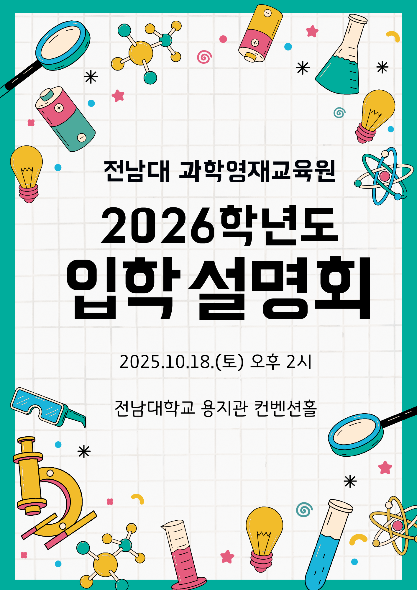 2026학년도 전남대학교 과학영재교육원 신입생 선발 모집을 위한 입학설명회 진행합니다