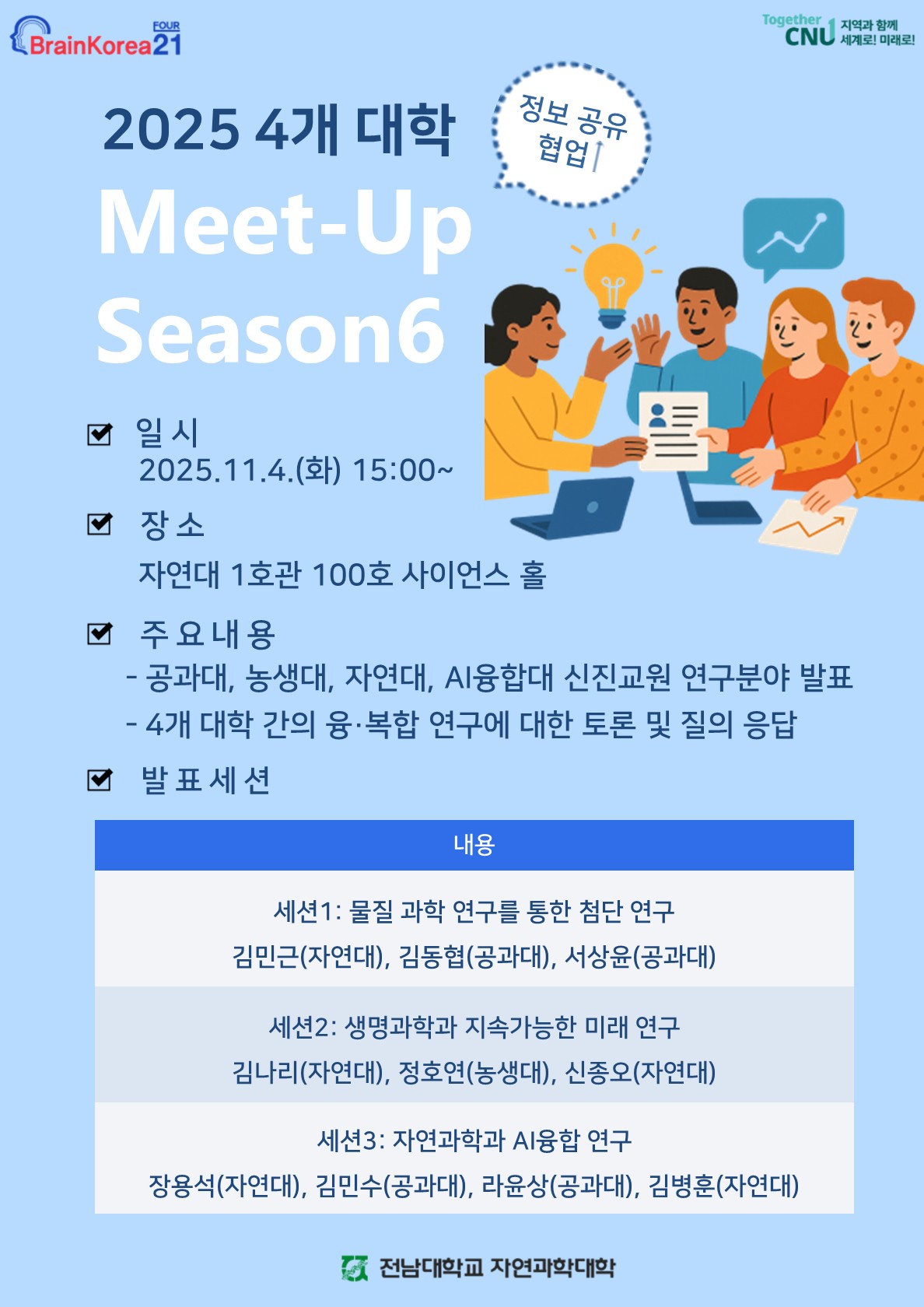 - 신임교원(발표자): 공과대학 4명, 농업생명과학대학 1명, 자연과학대학 5명