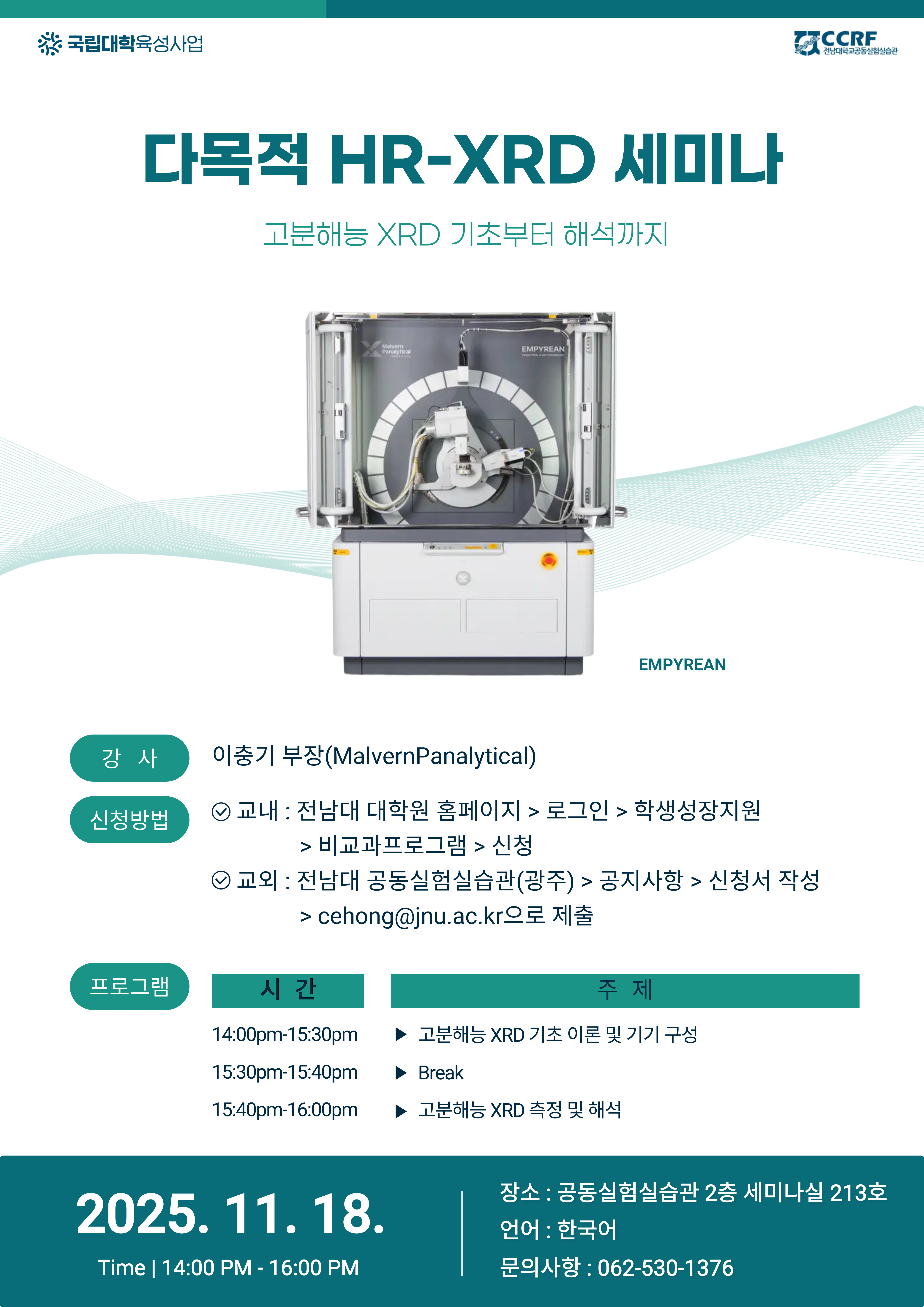 고분해능 XRD 측정과 해석 방법에 대해 다룰 예정이오니, 많은 관심과 참가 바랍니다.