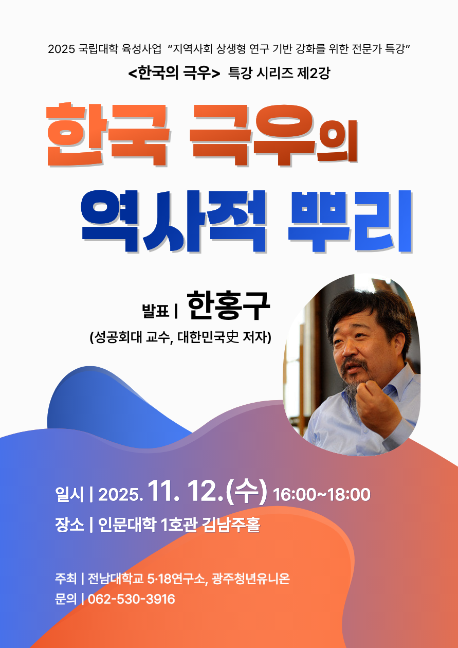 전남대5·18연구소는 현재 가장 뜨거운 쟁점인 한국에서의 극우의 문제를 입체적으로 살피기 위해 총 4강의 시리즈 특강을 준비했습니다. 이번 시리즈는 한국 극우의 역사와 현재의 양상, 그리고 대안을 그려보는 지형도를 제공할 것입니다.