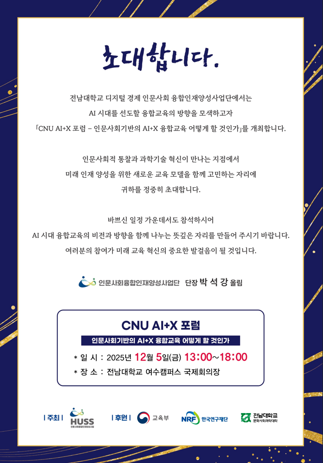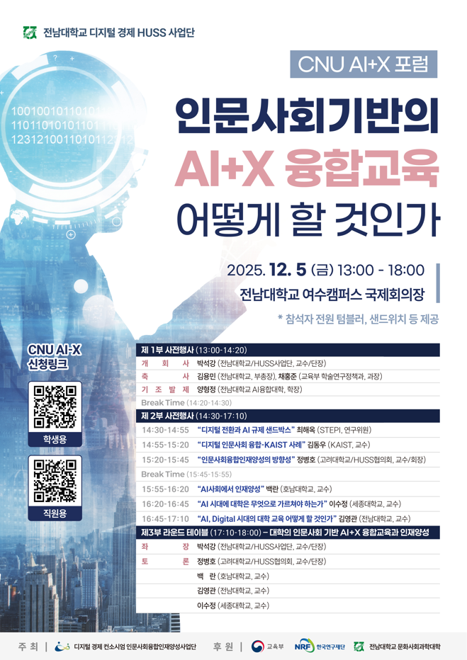 ◎ 행사명: [CNU AI+X 포럼] 인문사회기반의 AI+X 융합교육 어떻게 할 것인가