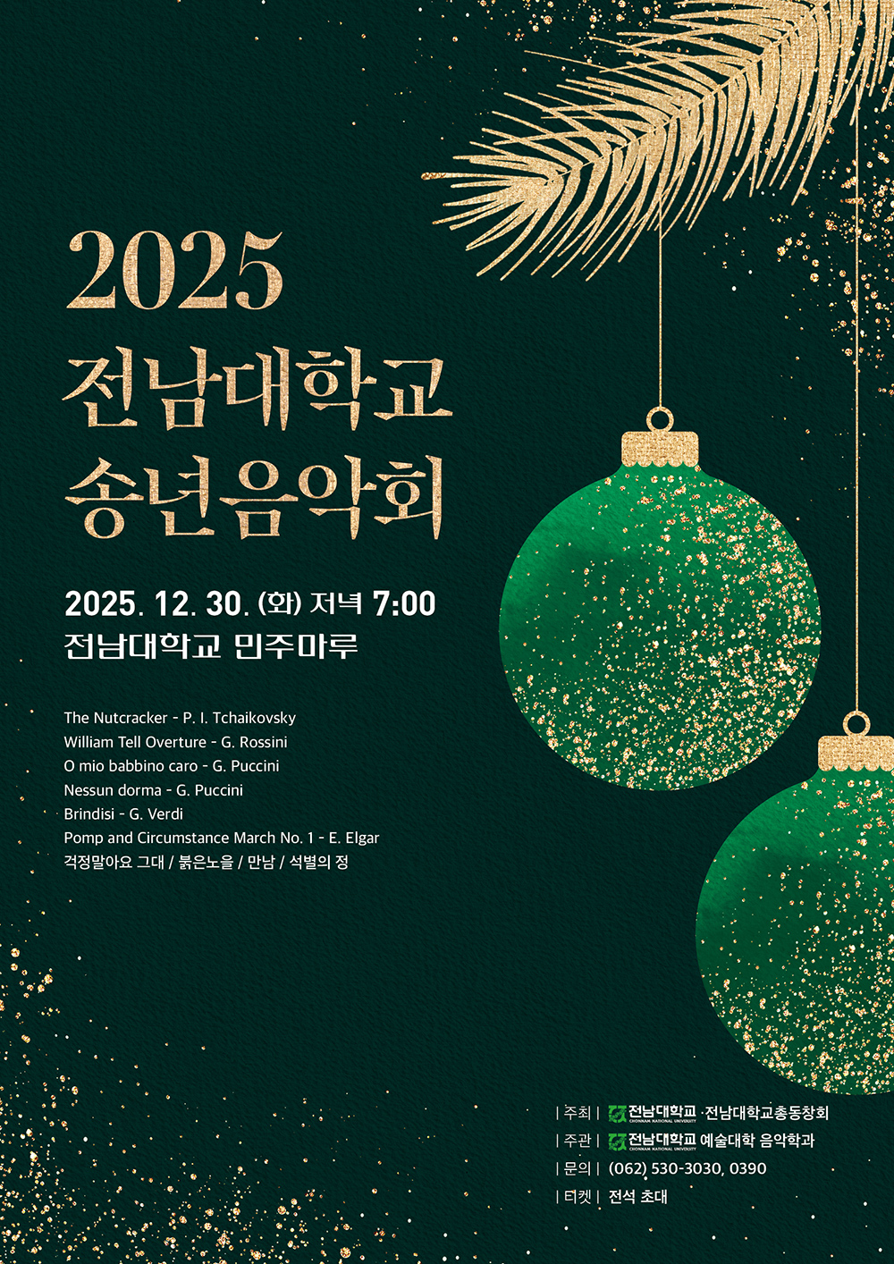 2025 전남대학교 송년음악회에 여러분을 초대하오니 많은 참석 바랍니다.
