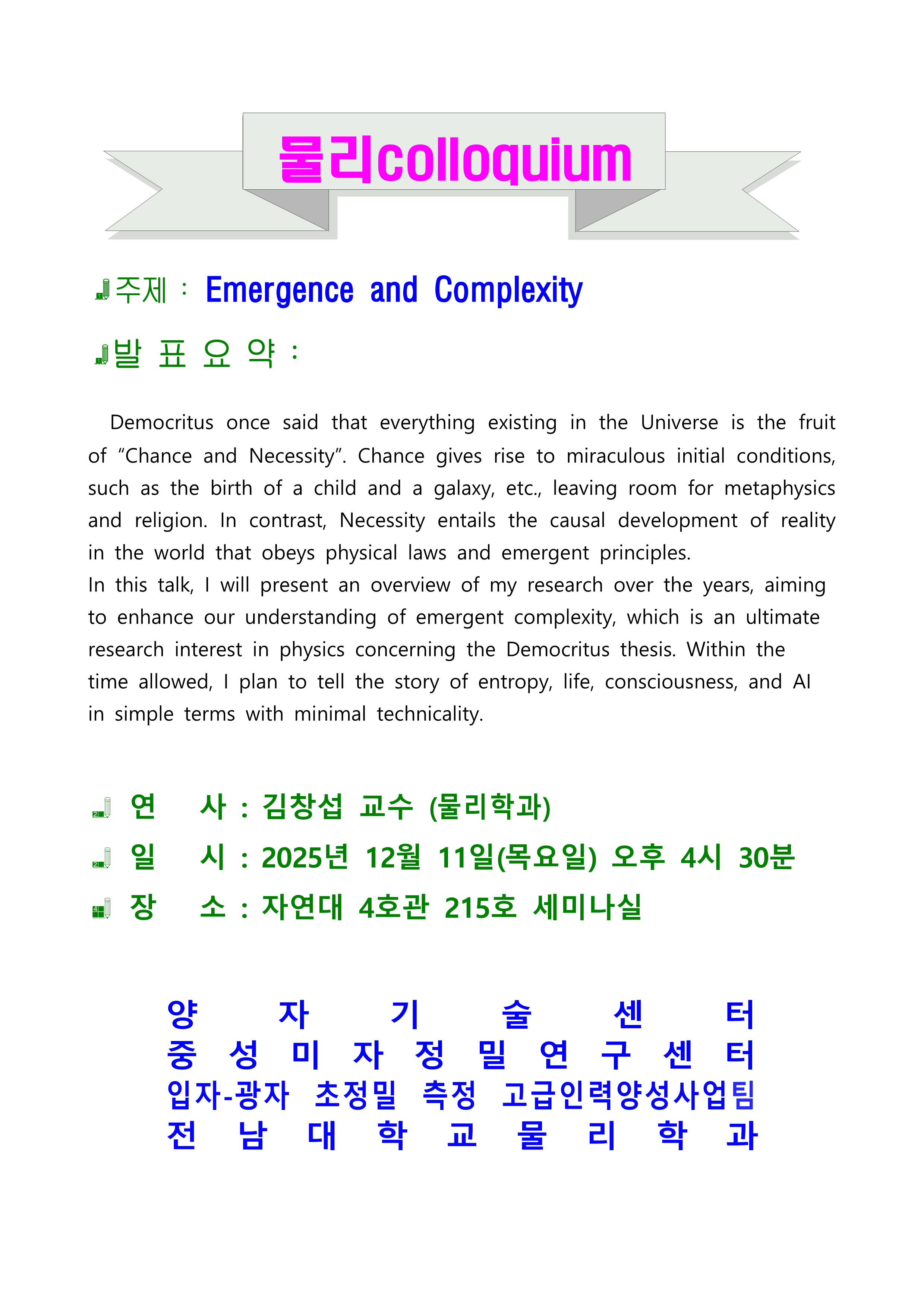 연 사 : 김창섭 교수 (물리학과)