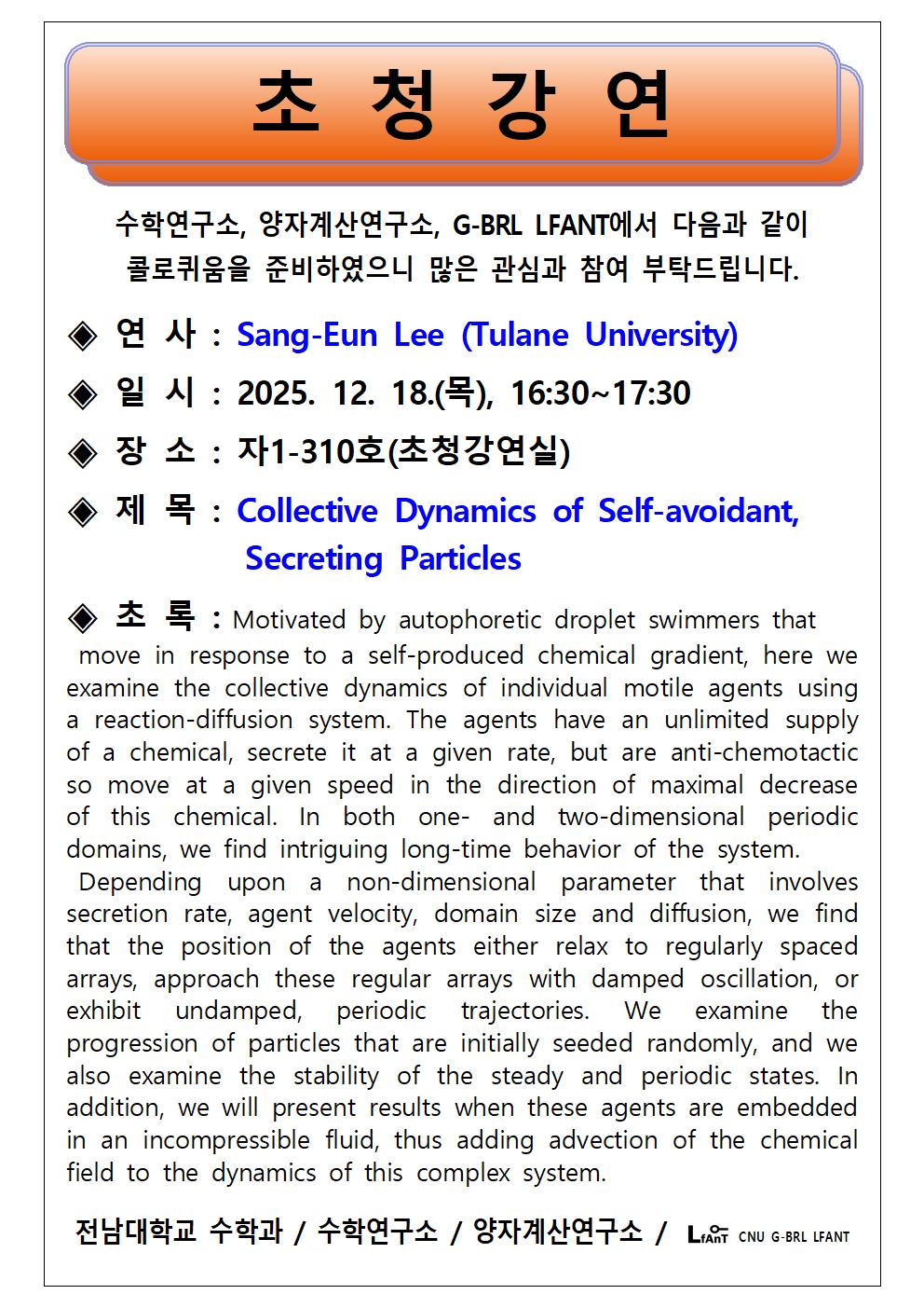 ◈ 연사 : Sang-Eun Lee 교수(Tulane University)
