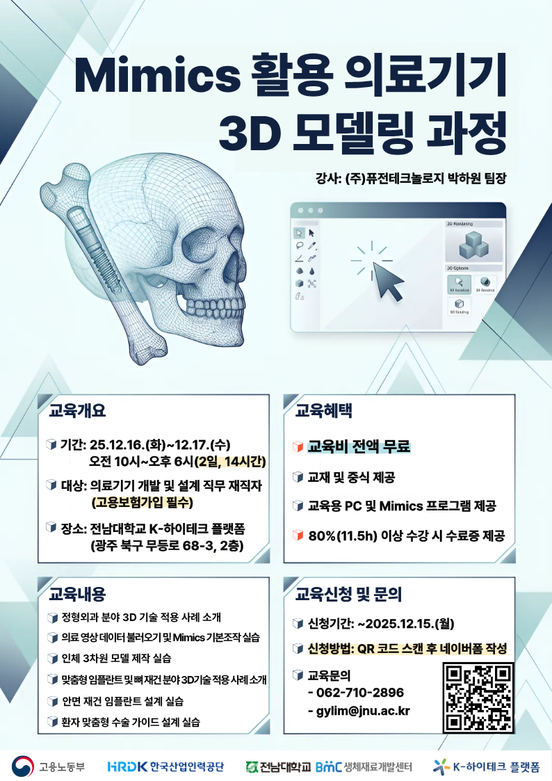 의료산업 발전에 기여하고자 'Mimics 활용 의료기기 3D 모델링' 무료교육을 운영하오니 많은 관심과 참여 부탁드립니다.