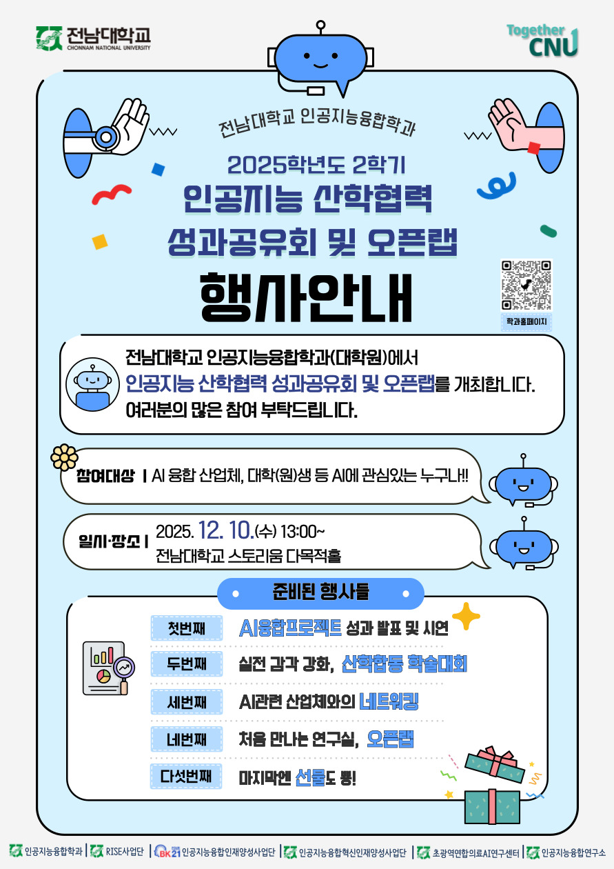 2025학년 2학기 인공지능 산학협력 성과공유회 및 오픈랩에 여러분들 초대 합니다.