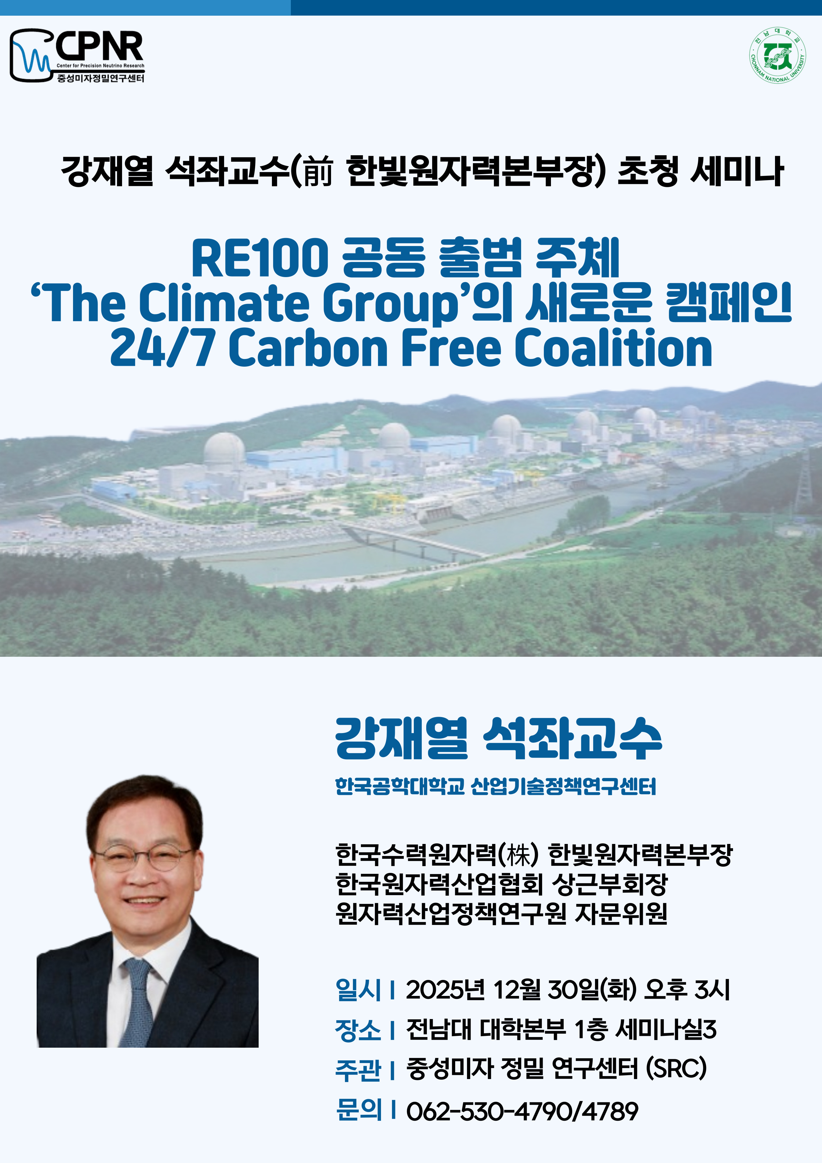 - 연사: 강재열 석좌교수(前 한빛원자력본부장), 한국공학대학교 산업기술정책연구센터
