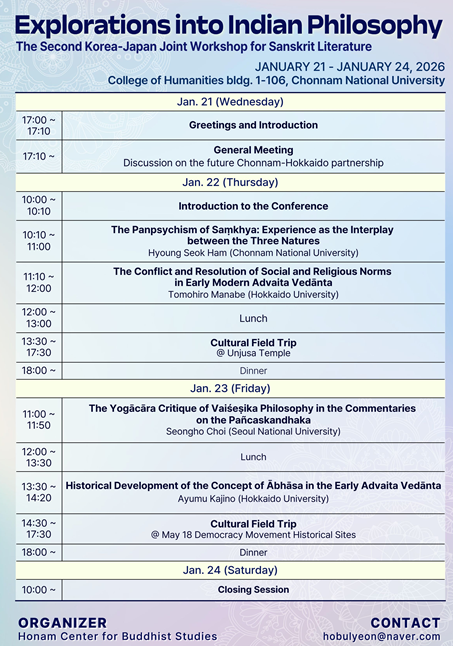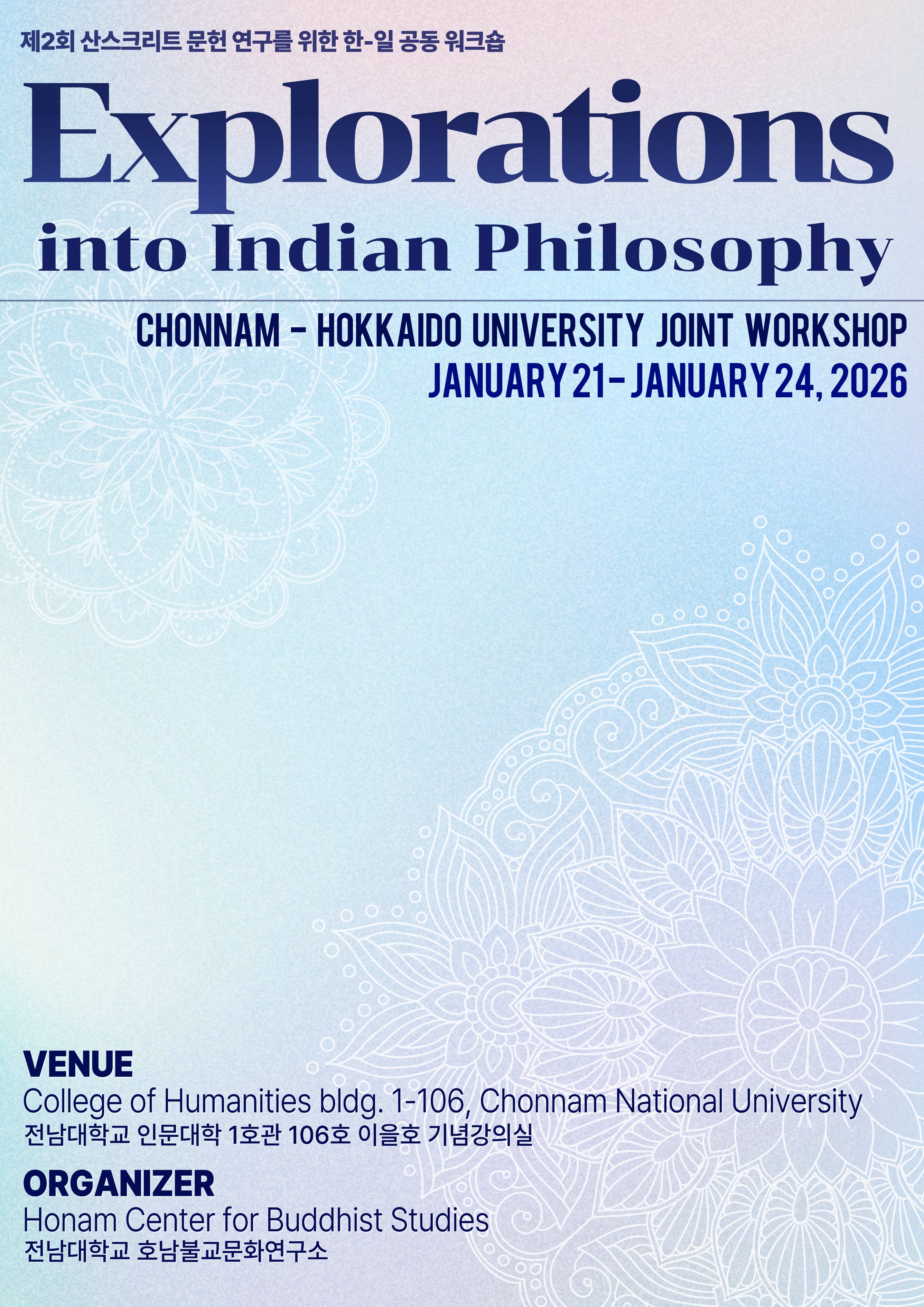 전남대학교 호남불교문화연구소는 홋카이도대학과 함께 제2회 산스크리트 문헌 연구를 위한 한-일 공동 워크숍을 진행합니다.