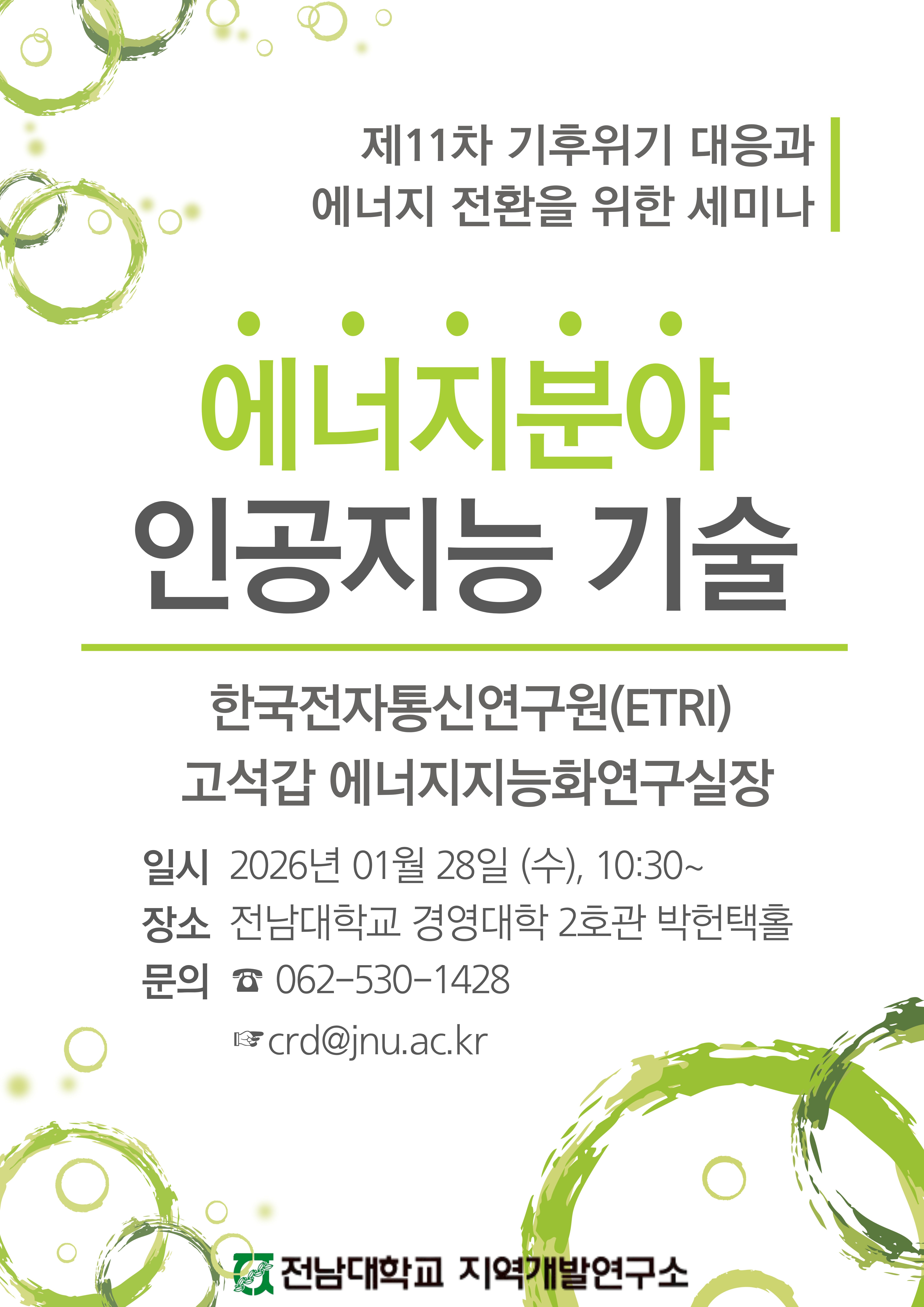 제11차 기후위기 대응과 에너지 전환을 위한 세미나가 개최되오니, 관심 있는 분들의 많은 참여 바랍니다.