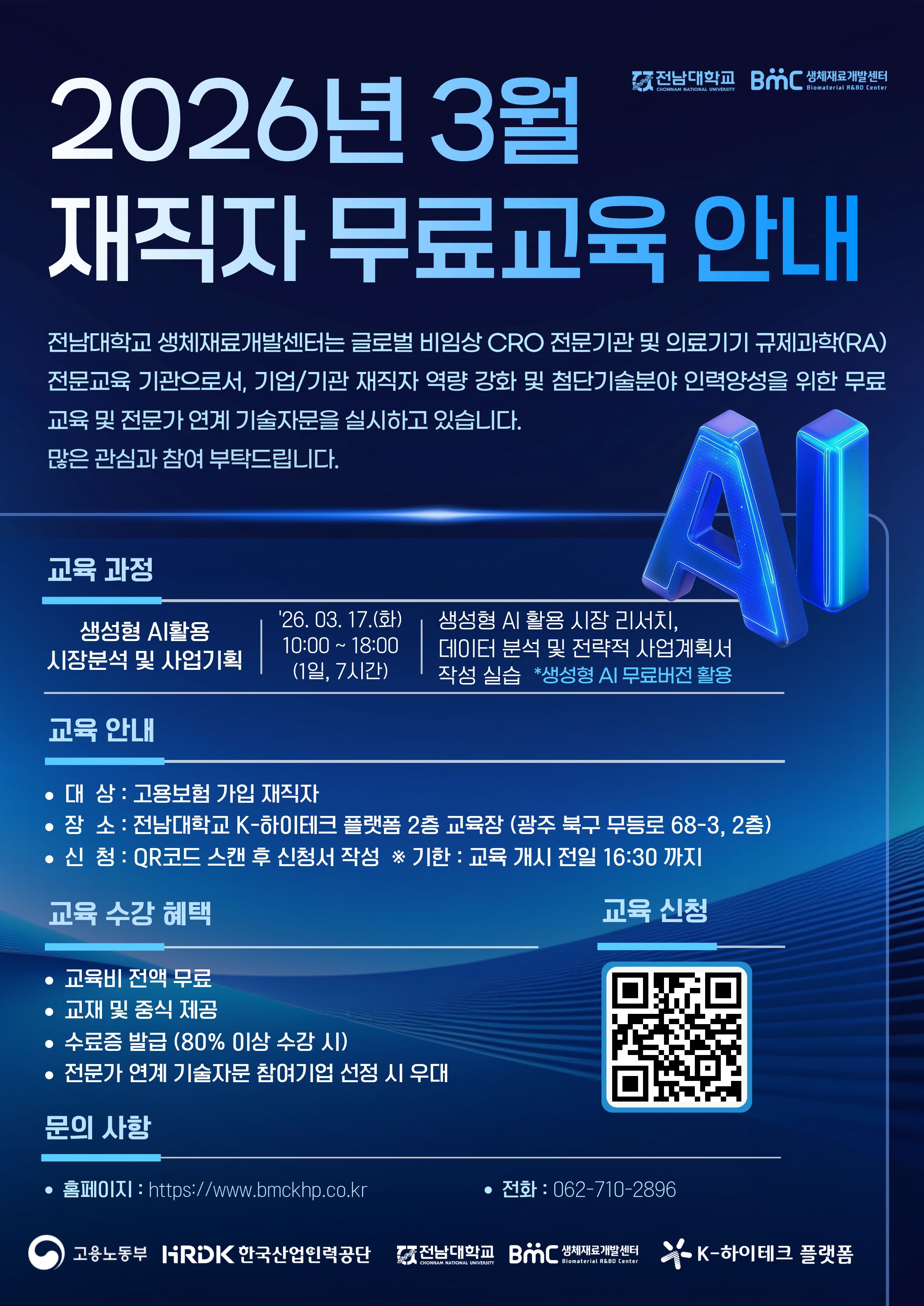 신청 문의 전남대학교 K-하이테크 플랫폼 교육 담당자(062-710-2896)