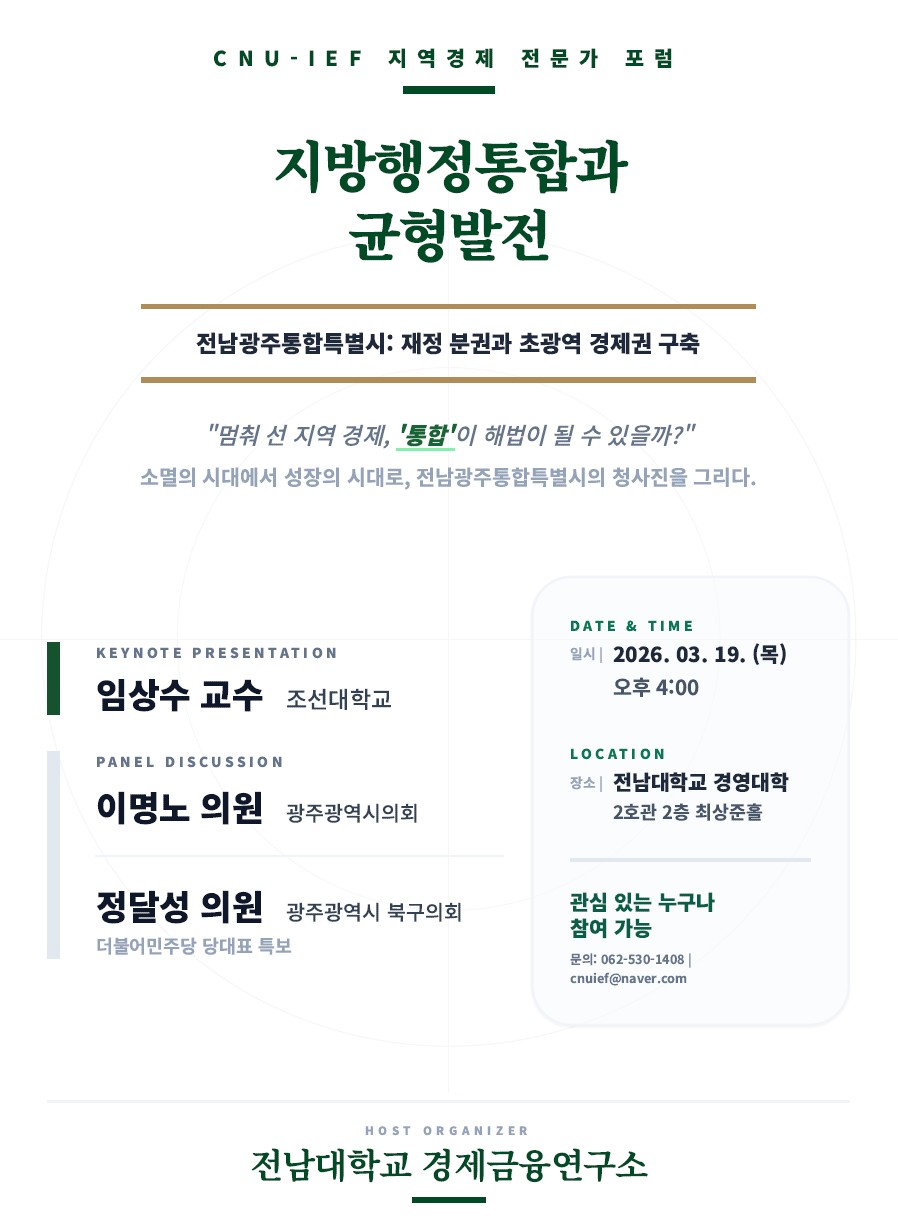 - 주제: 지방행정통합과 균형발전 (전남광주통합특별시: 재정분권과 초광역 경제권 구축)
