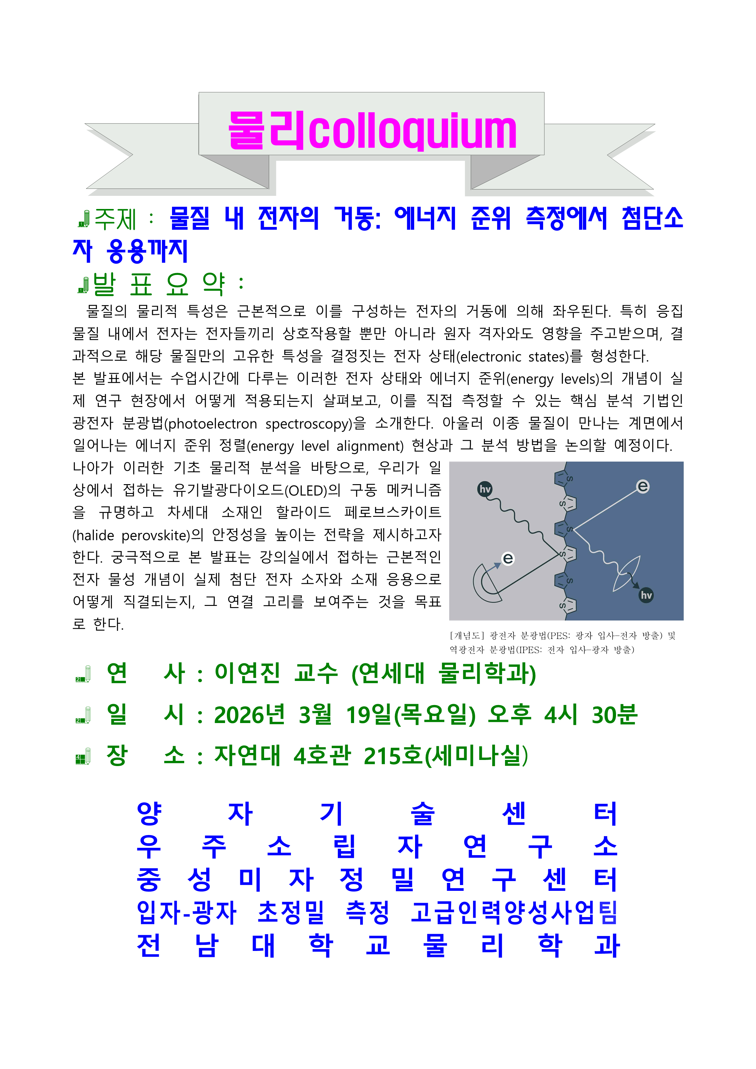 주제 : 물질 내 전자의 거동: 에너지 준위 측정에서 첨단소자 응용까지