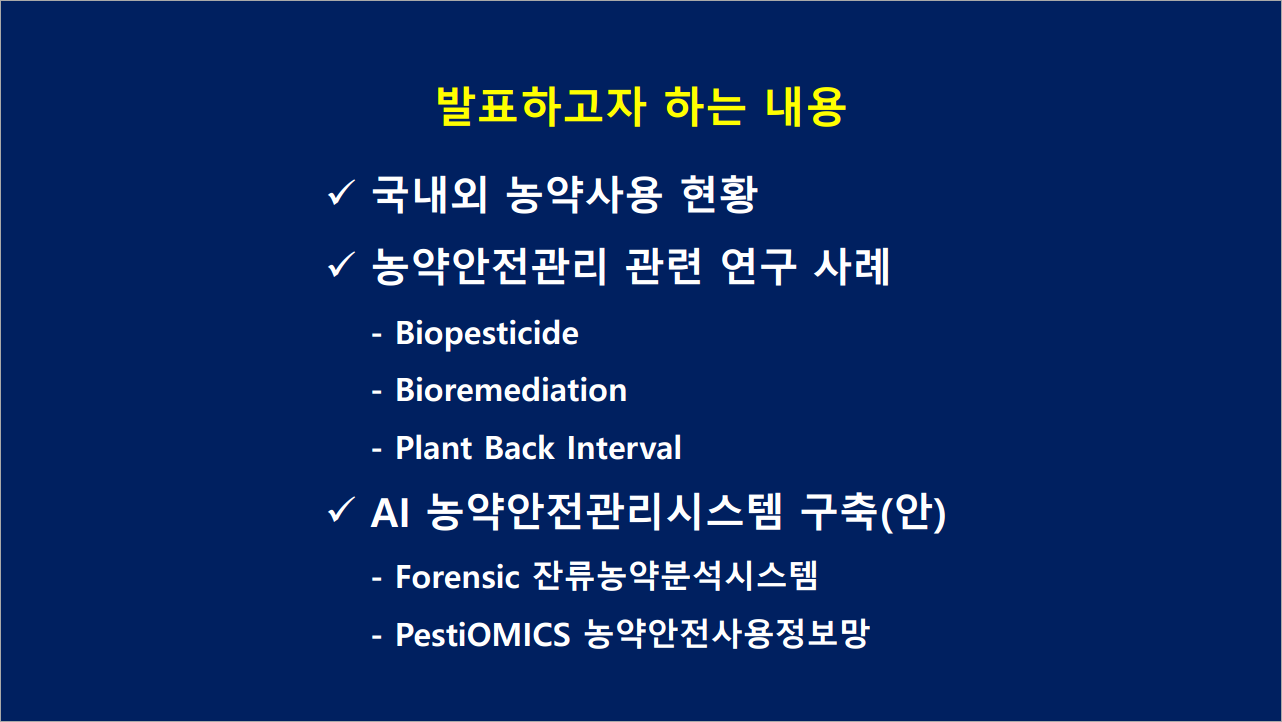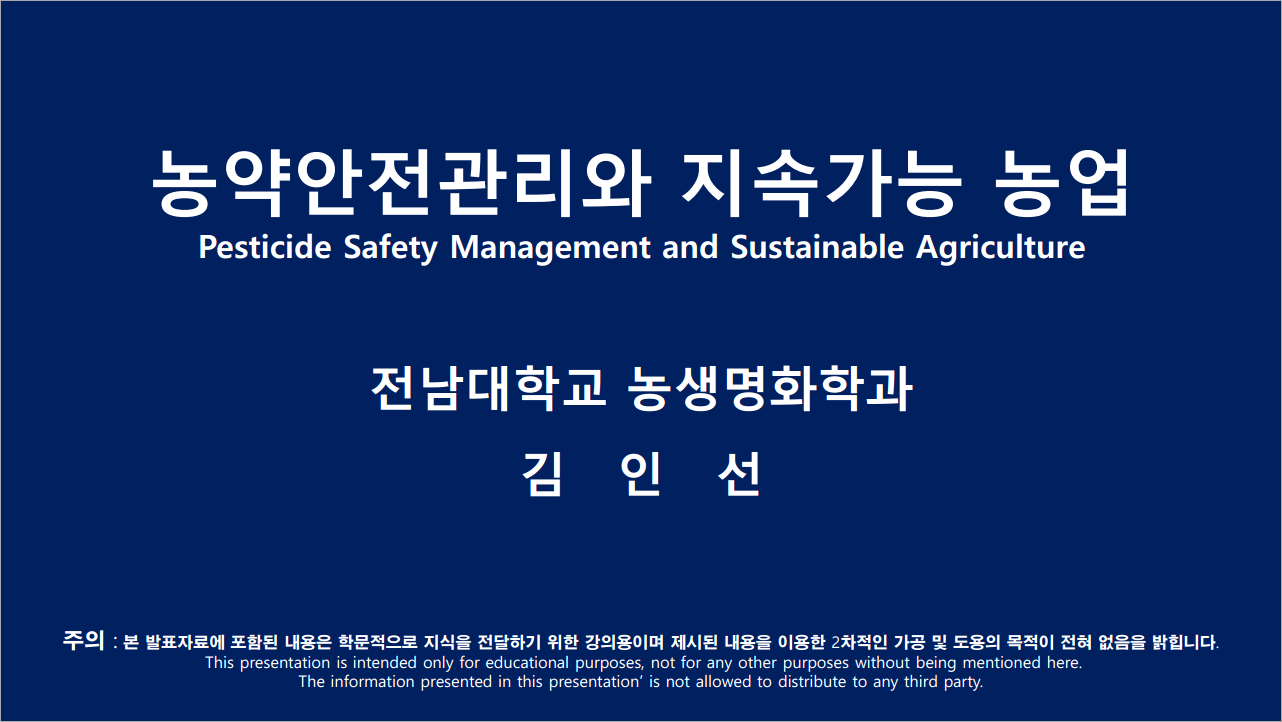 ○ 발표제목 : 농약안전관리와 지속가능 농업