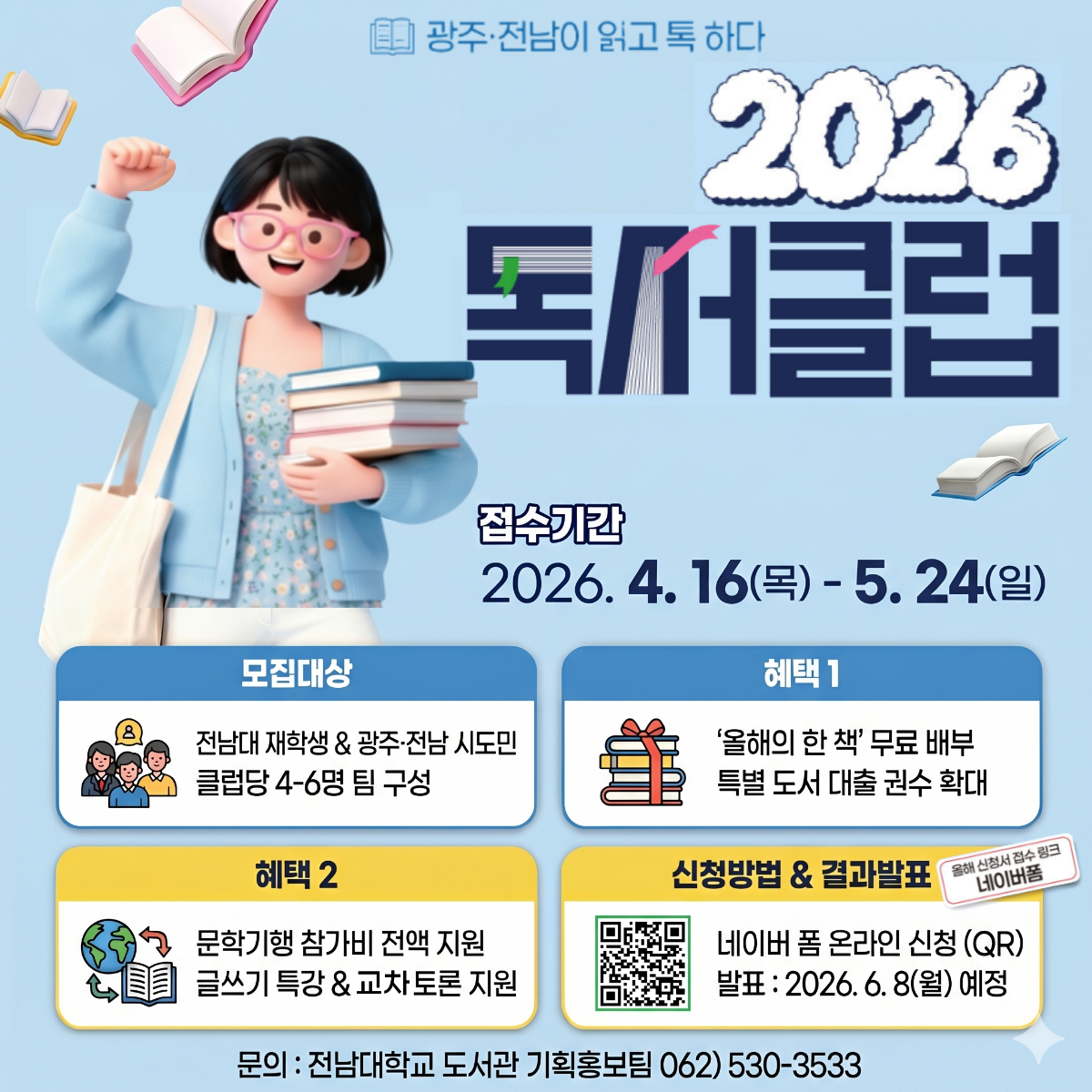 전남대학교 도서관에서 책을 매개로 지역 공동체 소통을 이끌어갈 '2026 독서클럽' 참여자를 모집합니다.