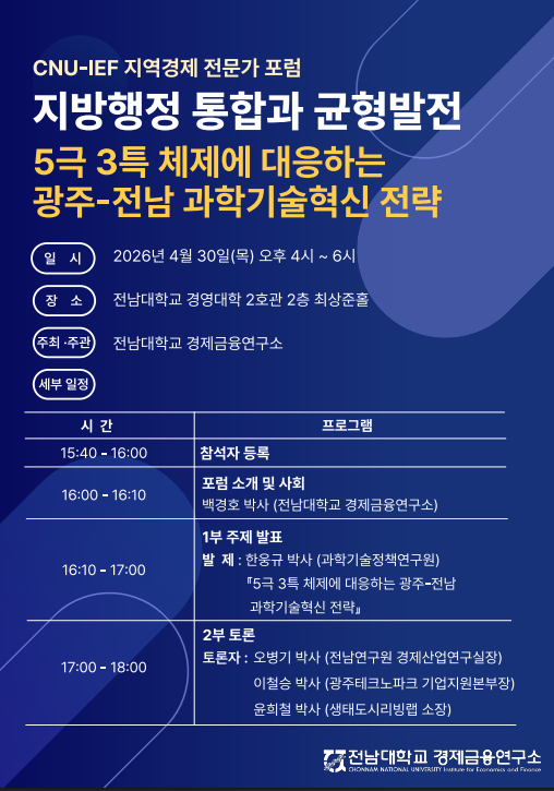 문의 : 전남대학교 경제금융연구소 062-530-1408