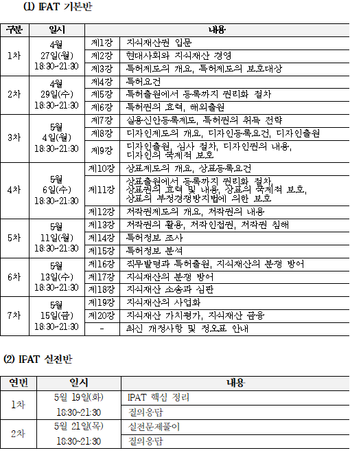 2026년 상반기 국가공인 지식재산능력시험(IPAT) 준비반을 운영할 예정이오니, 관심있는 학생은 신청 기한 내 아래 링크로 신청바랍니다.